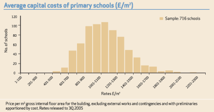 Average capital costs of primary schools (£/m2)