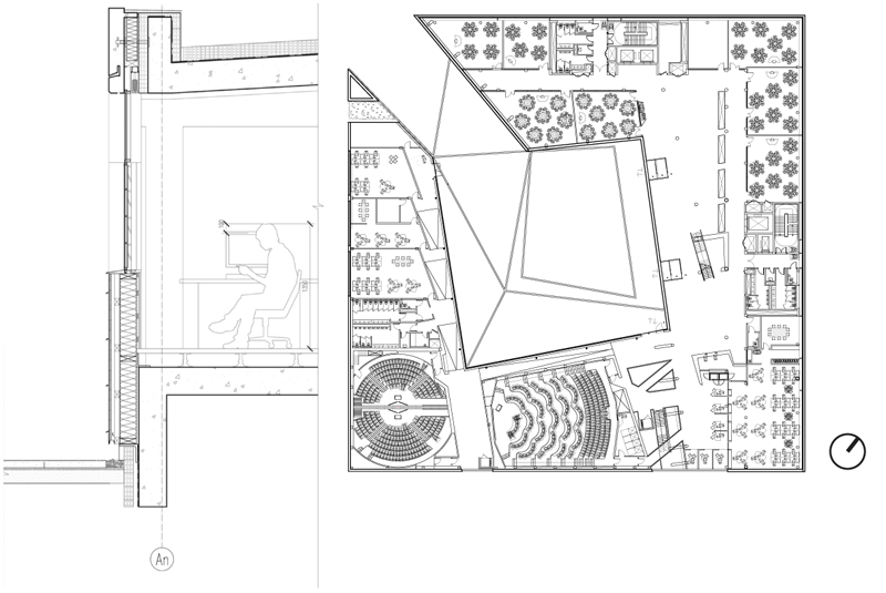 The two smaller lecture theatres will present the biggest challenge and potentially most reward for users. Located back to back, the semi-circular rooms appear reasonably conventional. It is only when the dividing partition is removed that the full extent of Arup Associates’ innovation will dawn on lecturers. “They will have to teach in the round,” says Patel. “Initially it could be daunting to be surrounded by students, but having to perform, to be more mobile and demonstrative will bring great benefits to both teacher and student.”