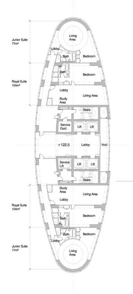 “Obviously if another tsunami struck, the basements would flood and the plant would be destroyed but after considering the commercial risks and building in flood defences, the client decided to go down this route,” says Godding. Other plant rooms are located a third of the way up each ‘leg’, effectively splitting the building into manageable zones for servicing.