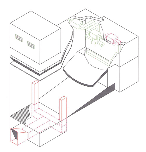 In the design, conditioned air is supplied into the auditorium from a system of high-level ductwork serving air diffusers within the structural zone above the technical gallery. The diffusers incorporate electric control actuators to allow the blade position to be adjusted remotely to accommodate both heating and cooling modes.
