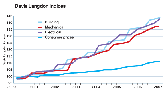 In this quarter’s update, Peter Fordham of Davis Langdon reports on the soaring consumer prices index, the rising cost of construction materials and the latest pay awards for workers