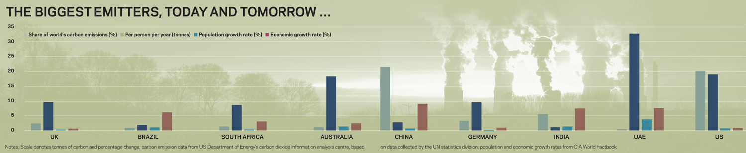 If negotiations go well at Copenhagen, what effect will it have on the UK’s building legislation? Well not much: Britain already has tough, binding carbon targets, and the most ambitious carbon reduction trajectory for buildings in the world. But an agreement could provide an international market for UK expertise. Paul King, chief executive of the UK Green Building Council, says: “We’ve been dragged there before everyone else so we have a competitive advantage in terms of our knowledge and technology.” Here we take a look at which countries are the carbon villains and which are the saints – which should give you a good idea of where the carbon reduction markets are.