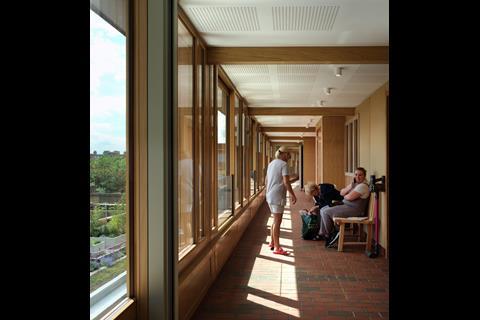 A large window on the street fronts a communal hall and kitchen open to local groups, creating a connection between residents and the surrounding neighbourhood. The building succeeds in being both private and open, domestic and civic.