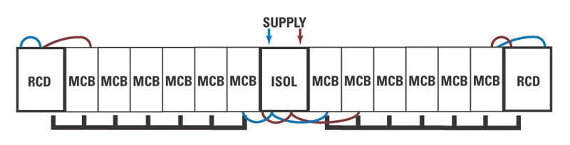The optimum solution in terms of safety and convenience is for every final circuit to be protected by an RCBO (Fig 1). The isolator-controlled dual-RCD configuration (Figs 2 and 3) would provide the most cost-effective solution.