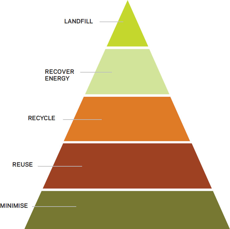 Based on the waste hierarchy (see diagram, right), much investment has been targeted at minimising the volume of waste requiring disposal. Projects managed by the Waste Resource Action Programme (Wrap) are good examples of the holistic approach adopted in the UK. However, there will continue to be a surplus, and energy from waste as a means of treatment is preferable to the last resort of landfill.