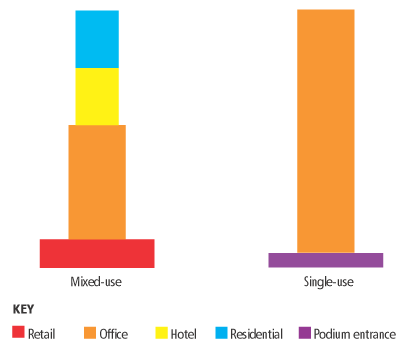In addition to these two established markets, developers are looking at the opportunities for developing mixed-use towers in major cities, incorporating retail, office, hotel and residential uses within one building.