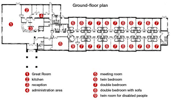 All the bedroom doors are fitted with a card-entry system, which is also connected to the bedroom lights and the internal heating. The same card can be used to buy drinks and snacks within the hotel.