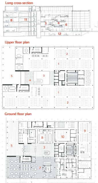 The environmental story of the building is as significant as that of the whole site regeneration. As designed by Foster and Partners working closely with environmental engineer Battle McCarthy, the building achieved the coveted “excellent” rating on the BREEAM scale. It scores highly on every aspect of its impact on the environment, from energy consumption, insulation and recycling, to the amount of energy expended in constructing and transporting materials, the proportion of materials drawn from sustainable sources, and the building’s integration with public transport.