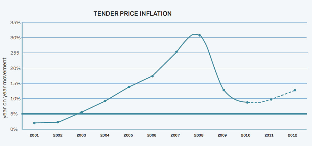 The outlook for the construction industry remains uncertain and construction prices can be expected to continue to fall owing to cuts in material and labour prices. However, market activity is expected to begin to increase before the end of 2010. Although it is unlikely to return to the boom of 2007-08, we can expect to see construction prices rise steadily from 2011.