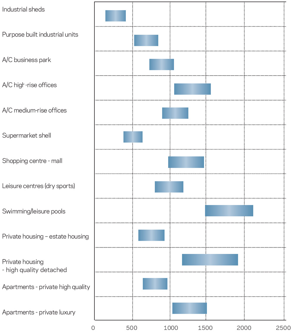 Costs for various buildings (£ per m2)