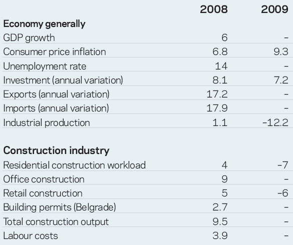 The past few years have been boom ones for Serbia’s construction industry – particularly in 2006, when it hit 20% growth. The market has settled down since then, although it was still 9.5% last year. However, there is a slowdown in workload under way which resulted in a slight fall in prices at the end of 2008; this trend is expected to continue in 2009.