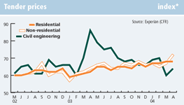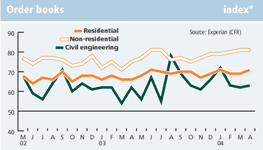 According to the latest orders figures from the DTI, total construction output rose by 14% in the first quarter of 2004, mainly thanks to a strong rise in commercial orders. The sector saw a 46% increase compared to the previous quarter and 19% compared to the first quarter of 2003.