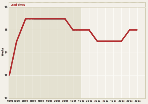 Reductions in workload have contributed to this reduction and the predicted slowdown in construction activity is likely to result in lead times reducing still further over the next 12-18 months, and perhaps stabilising in 2003.