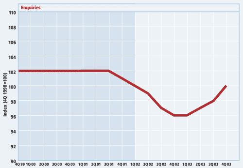 Of those questioned, 17% expect lead times to drop in the next six months and 76% expect them to be static. Significantly, only 7% expect lead times to increase. This is surprising, as 23% of firms noted that they were busier with enquiries than in the past six months. Half said interest levels were unchanged. However, reports in the press of serious slowdowns do not seem to be biting the supply chain at the moment. It may be that a serious downward trend in lead times will happen in 2002.