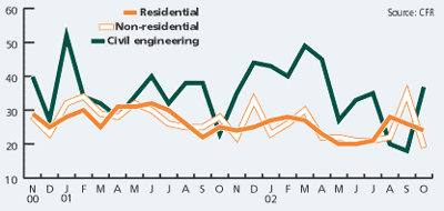 October's activity balance remained stable compared with that recorded in September, as did the balances for tender enquiries and short-term employment prospects. However, the all-important order books balance became more heavily negative than in the previous months, and firms' optimism about short-term tender price prospects also dropped somewhat.