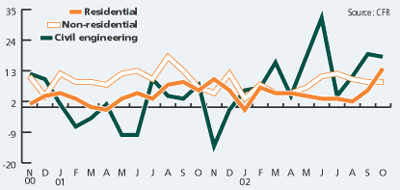 Results from October's survey indicate rising labour costs compared with the beginning of the third quarter of the year. Most firms in both the residential and non-residential building sectors, as well as those in the civil engineering sector, reported a rise in labour costs of between 2.6% and 5%.