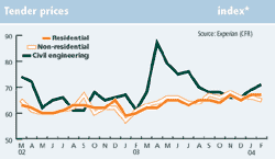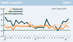 The orders index showed only a small decrease from its position in January, and the tender enquiries index remained constant.