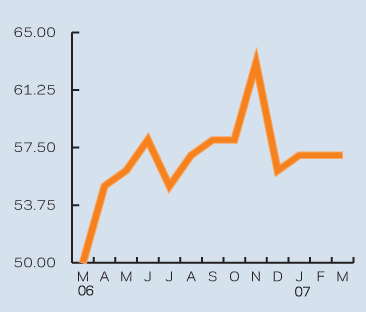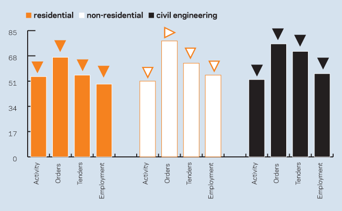 The measure is forecast to increase to 57 in January and to stand firm at that level until March. This optimistic outlook is based on the current strength of order levels and tender enquiries.