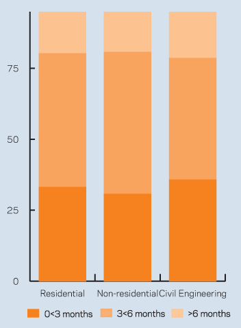 Responses were similar from the residential and non-residential sectors, with over six months being reported by 20% and 19% respectively and under three months by 33% and 31% of firms.