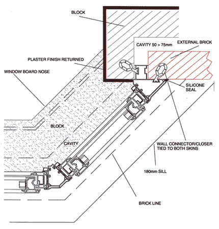 The cavity closing sub-frame is rigid enough not to need additional metal clips or triangulation and the finished window clips into place from the inside.