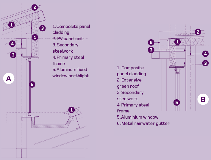Mitchell’s main challenge was keeping to the tight 29-week programme. This relied on off-site manufacture for many of the structural components – which also had the sustainable spin-off of reducing waste on site. The structural steel frame is mostly clad with Kingspan long-span insulated metal panels on the walls and roof, chosen to provide an insulation and weathering layer in a single sheet.