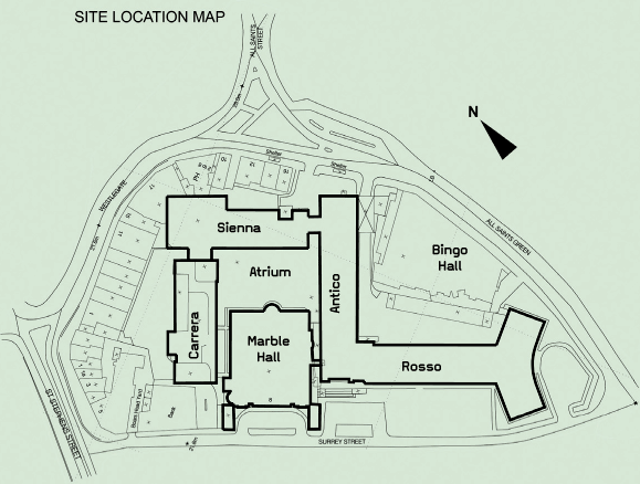 The four-storey atrium unites Marble Hall, Carrera, Sierra and Antico, including some below-ground areas. It is the main access for visitors, but most users enter by several staff entrances, well away from the atrium. Fire escape is always away from the atrium.