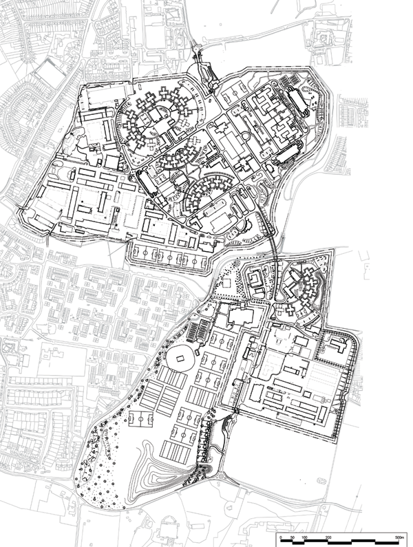 Work started on site immediately after financial close in February 2004. The plan was to complete infrastructure including roads, a bridge and services, while design progressed on the buildings. The presence of completed infrastructure then made it easier for the construction teams, as they had roads and services in place. The infrastructure was done by Christmas 2004.