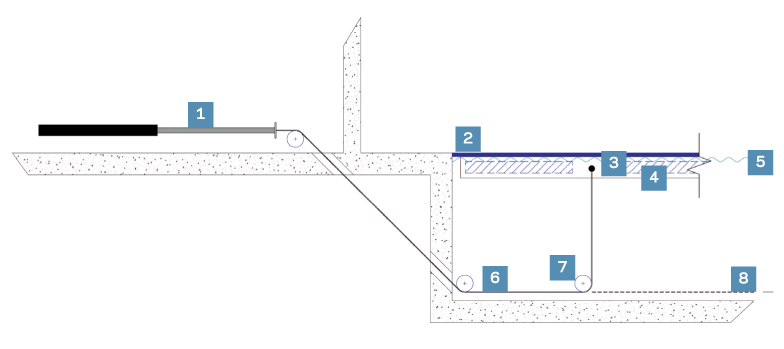 The principle behind the movement of the floor is straightforward: the foam blocks keep the structure buoyant and steel cables, attached to its underside and fed through a series of pulleys to a hydraulic cylinder, control the platform’s vertical movement and provide restraint when it is at rest.