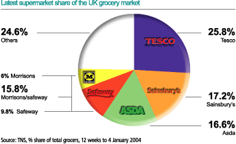 Now it looks as though changes within the sector are about to trigger a fresh surge in demand for construction services. One factor is the change in the commercial balance of power between the largest firms. Sainsbury's has lost ground to Tesco and analysts predict it will be overtaken by Asda in the next 12 months. Richard Ratner, a retail analyst at stockbroker Seymour Pierce, says: "We're going to see three major powers – Tesco, Morrisons and Asda – emerge in 2004, with a struggling Sainsbury's."