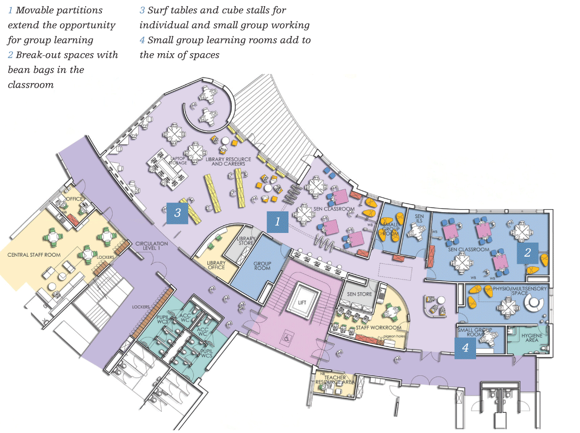 One of the hurdles that has prevented this is the procurement process. Traditionally, FF&E has been at the end of the supply chain and is not considered in detail until the later stages, says Lawrence Brenchley, director of FFE Consulting. “The whole concept of how the spaces work and how the fixtures and fittings help achieve it needs to be considered at the early stages of design to meet a particular school’s approach to teaching and learning.”