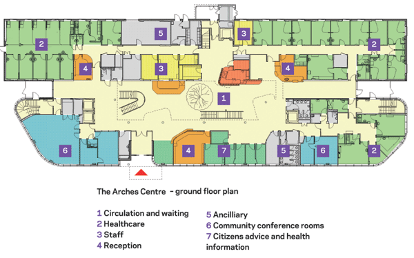 As for the services on offer, social, community and healthcare facilities all share the ground floor. Ten multipurpose consulting rooms are served by a rota of visiting medical specialists a new breed of specialist trained nurses. At one end of the building a large conference room and two meeting rooms are available to local community groups. But pride of place next to the main entrance is the Citizens Advice Bureau.