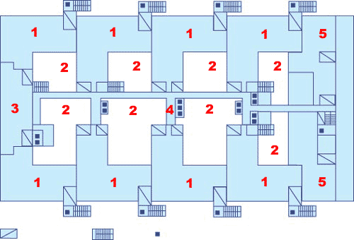 The outside of the building is showing premature signs of weathering. The stove-enamelled panels to the plant rooms at the head of the escape stair towers are discolouring. Poorly detailed cornices without flashings allow rainwater to leak between precast concrete units and stain the brickwork below.