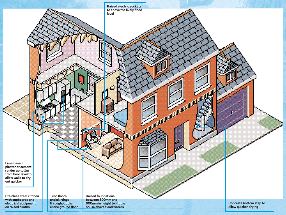 A number of solutions have been suggested to make homes “flood resilient”. All are designed to minimise the cost and damage from water ingress and to get people back in their homes as quickly as possible after the water has left.
