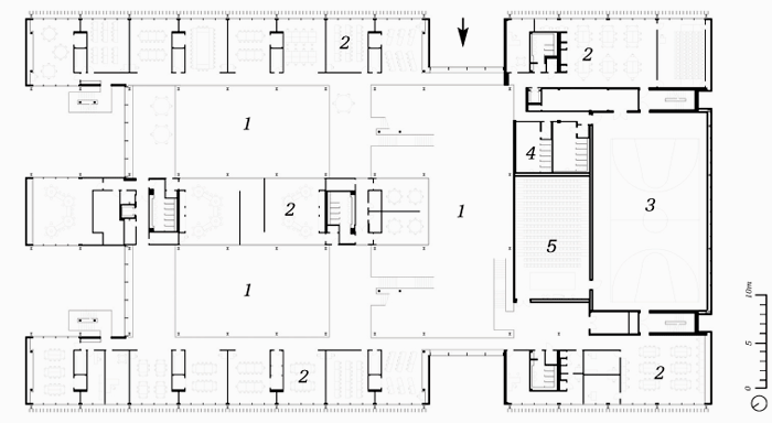 The school’s compact arrangement around the atriums, without corridors, makes all the spaces quickly accessible. The downside is that the school does not yet double up as a community facility, as this would require more management resources to safeguard the classrooms and their high-tech equipment.