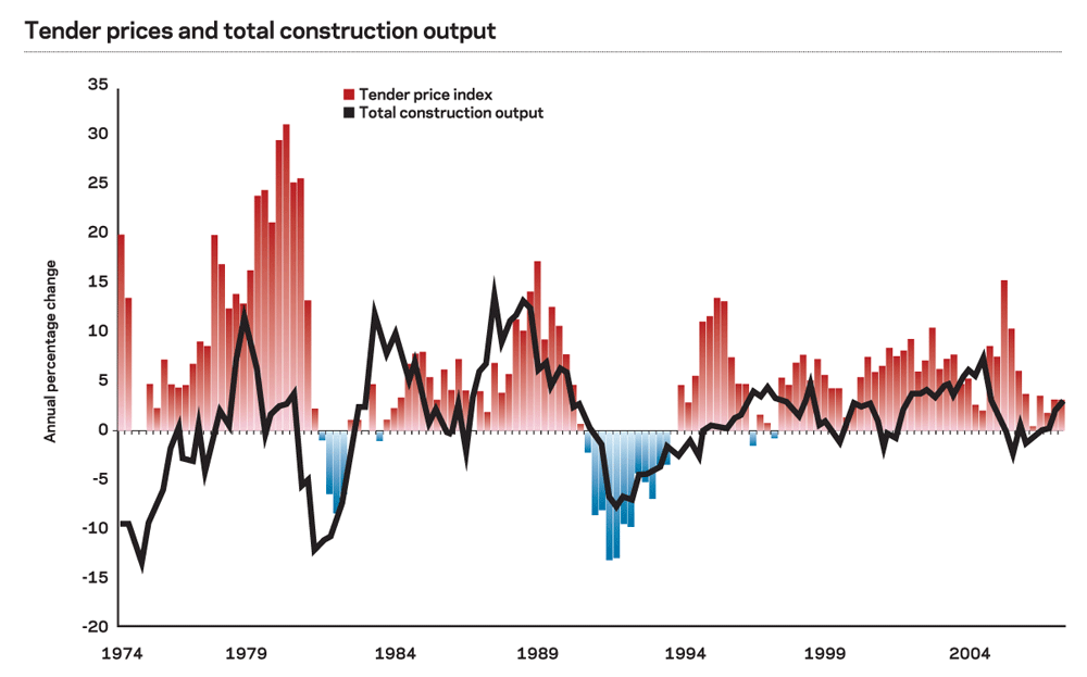 As a result, the level of tender prices has also followed a steady upward trend, following that of output, averaging about 7% a year.