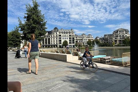 “This is not Paris but it is in the Haussmann Paris style. It’s really good here. You have the lake, the cafés, the bakers, the supermarket. You have everything you need. Everyone comes here. It gets really, really full, particularly in the evenings. Last night we had 200 covers. All the flats are full. People adore the architecture. I really like it.”