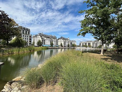 This value is profit. But it can also be converted into social housing or better amenities and more beautiful buildings. More makes more. In Clamart, more than half the apartments look out on a luscious and lovely lake, lined with trees and bull rushes.