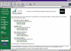 The Connet project also includes and expands other available services. For example, a DETR-funded project to resell waste material over the web will be accessible from Connet. This will also be extended to the rest of Europe. If a British builder is looking for a batch of second-hand bricks, it can post a message on the site for any broker that happens to have a consignment of them. Similarly, should an Italian firm be looking for waste bricks in its area, it will be able to do the same thing.