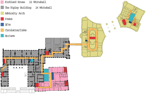 client The Cabinet Office architect HOK International project manager Drivers Jonas structural engineer Alan Baxter & Associates services engineer Curona Design quantity surveyor Davis Langdon & Everest main contractor Holloway White Allom (Admiralty Arch) main contractor Balfour Beatty Construction (Ripley Building, Kirkland House)