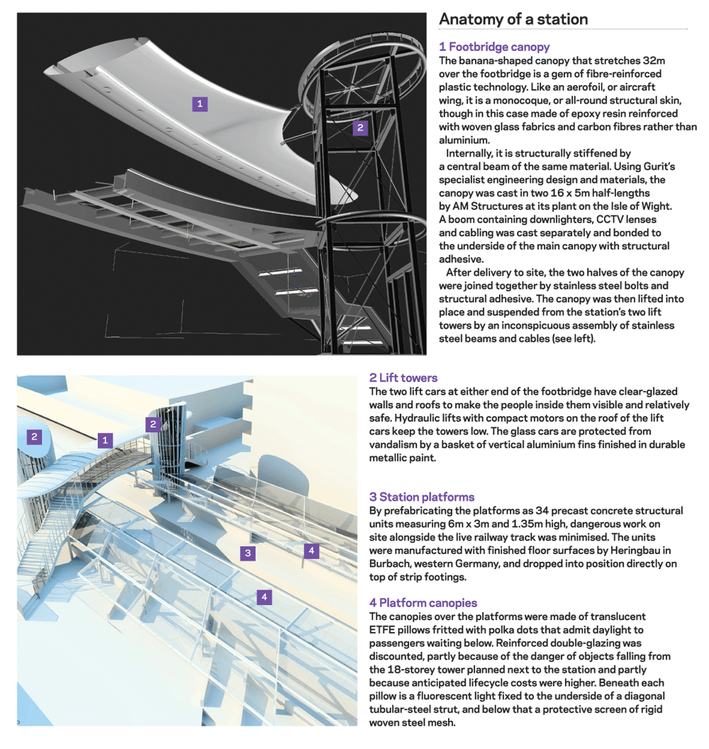 The building’s flamboyant design and bespoke elements, such as the glass-fibre canopy, glazed lifts and ETFE canopies over the platforms, pumped the project cost up to £7.5m, but much of this came out of the communities department’s special Community Infrastructure Fund.