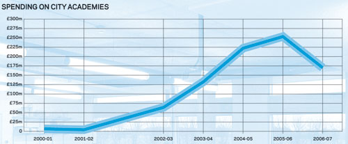As it turned out, the NAO’s report into the academies that have been built so far was generally positive, confirming that they have “made good progress in improving GCSE results” and that performance is rising at a galloping rate. Not a bad return for the £840m invested in the programme up until October 2006.