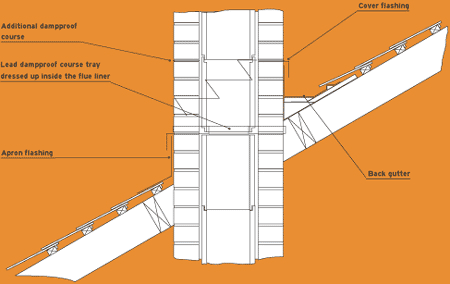 Where a steeply pitched roof has been used or where the chimney is exposed to severe wind-driven rain, an additional dpc should be installed above the lead tray to reduce the amount of water reaching it.