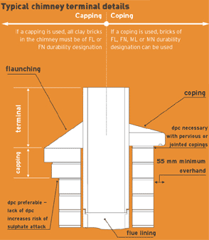 - Copings, cappings and flaunchings should be constructed using only FL or FN class clay bricks with BS designation (i) mortar made using sulphate-resisting Portland cement.