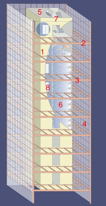 A stronger structure with better fire protection will give people more time to escape, but it can take many hours to evacuate a very tall building. More, and wider, stairs seem like an obvious answer to cope with total evacuation, but they take up valuable space. One possibility is the inclusion of fireproof "safe havens", common on oil rigs, to give people somewhere to escape to. Hodge believes another answer is escape chutes – like a fairground helter-skelter. These would not take up much room but would enable people to speed to the bottom very quickly.