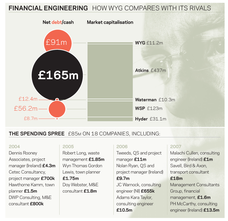 Hamer insists he “only sees upsides” as a result of WYG’s £85m-plus spending spree, but whatever the merits of individual deals, the cold fact is that they have bloated the company’s balance sheet with £123m of goodwill (the difference between a company’s tangible assets and its sale price).
