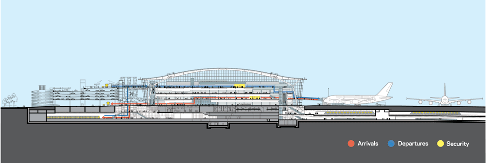 There are many reasons why T5 can claim to be a cutting-edge airport terminal. In architectural terms, here are four important innovations that Rogers has introduced:
