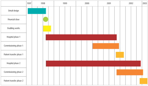 He started work on the project in 1996 with a small team of four people including a planning manager, a cost expert and a designer. The first bid was submitted to Lothian NHS Trust by Consort in June 1996. By October that year, the consortium reached preferred bidder status. In this time period, contractor ERJV prepared 44 drafts of its bid. "We've spent a lot of time reiterating the design to make it affordable," Anderson says.