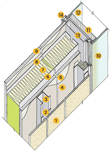 Production costs were further reduced by Farr, who rationalised the total facade area of 5000 m2 into just eight panel sizes. The entire external wall was built for a unit cost of £400/m2, which quantity surveyor Davis Langdon & Everest claims is at the lower end of the range of comparable systems.