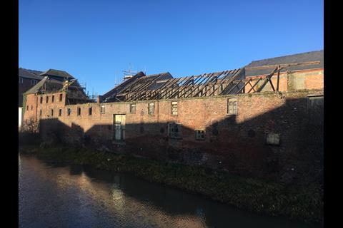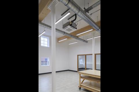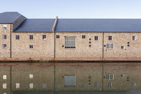 The building sits in the centre of town in a set of refurbished former Victorian warehouses and a 1,115 square metre new-build extension. Arriving via a pedestrian bridge across the water, you are greeted by an L-shaped, brick-clad, slate-roofed building topped with a saw-toothed roof and metal-mesh structure.