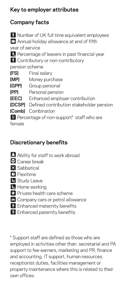 employee surveys, to set a benchmark for selected staff demographics and to form the basis of the descriptions for each of the companies within the guide. For example, a large architectural practice with no female employees would have to provide acceptable rationale for this demographic to remain in a lead placing.